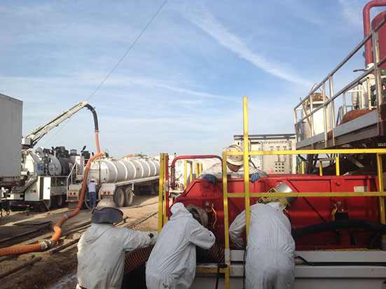 Let the Pros do your rig wash. Let us work on your Rig, we'll clean steel pits, shakers, pumps,derick, cellar, etc. With high volume units, industrial biodegradable soaps and hot water, we will do whatever is needed to meet the requirements and satisfaction of your tool pusher and company man. Our methods of cleaning rigs supercede our competition. With the combination of our high volume vac-unit and our high pressure washing units, we are able to knock valuble time off your rig move. Whether its before a move or just routine mantinence and cleaning, give us a call.